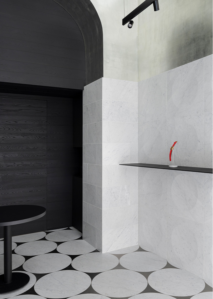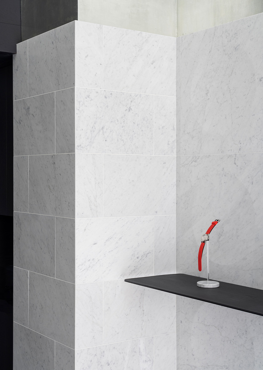 The watches are the stars of the show. The shop’s architecture is merely the stage; as a backdrop to enhance the watches. Three ingredients make the interior: Natural, quality materials, craft perfection and the graphic ‘roundel-effect’ of the floor and walls, as a subtle nod to watch dials.